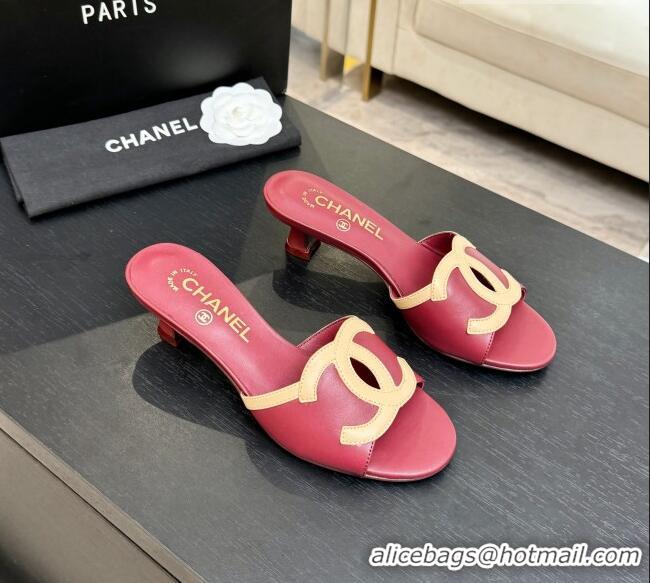 Unique Discount Chanel Lambskin Mules Sandals with 45mm Heel G47252 Deep Red 2026
