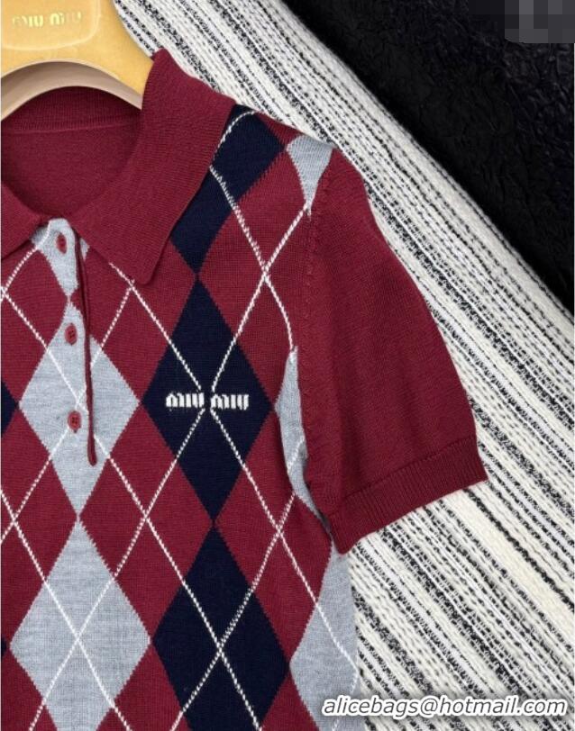 > Clothes Online > Miu Miu Clothes > Good Looking Miu Miu Cashmere Plaid Polo Shirt 0814 Red 2025