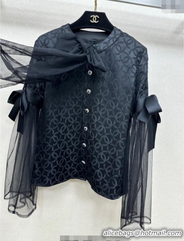 Best Quality Chanel Silk and Mesh Shirt with Bow CH111464 Black 2025