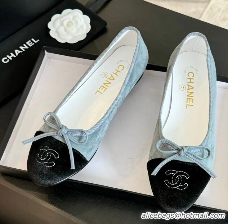 Buy Discount Chanel CC Ballet Flats with Bow Suede CH1023 Cloud Blue/Black Canvas