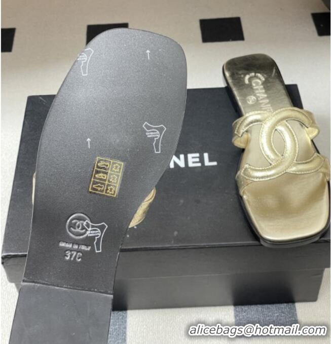 Inexpensive Chanel Crackled Laminated Calfskin Mules Sandals G47250 Gold 2026