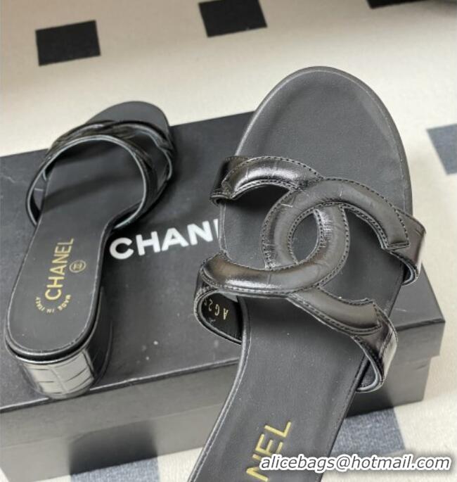 Classic Inexpensive Chanel Crocodile Pattern Calfskin Heeled Mules Sandals G47250 Black 2026