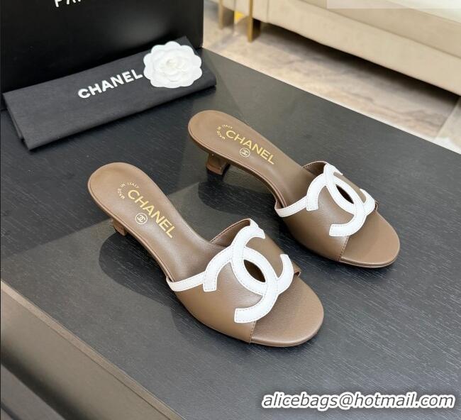 Best Price Chanel Lambskin Mules Sandals with 45mm Heel G47252 Khaki 2026