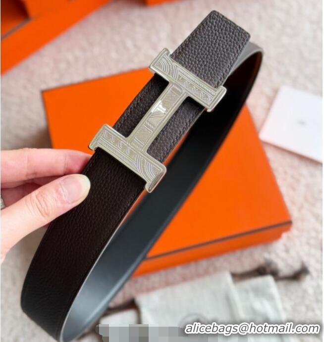 Unique Grade Hermes Men's Constance Touareg Reversible Leather Belt 3.8cm 0617 Chocolate 2025