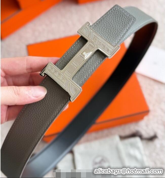 Well Crafted Hermes Men's Constance Touareg Reversible Leather Belt 3.8cm 0617 Grey 2025