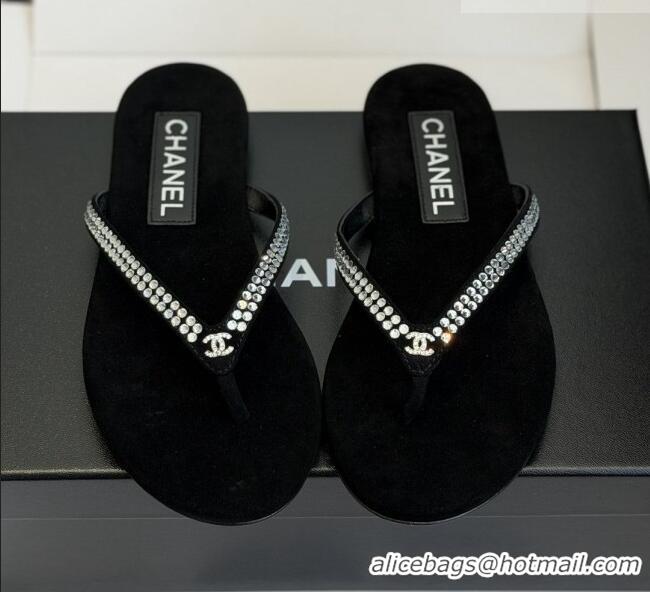 Modern Classic Chanel Velvet Thongs with Crystals CH32805 Black 2026