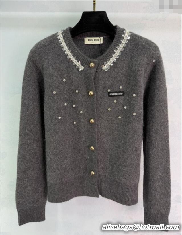 Best Product Miu Miu Wool Cardigan with Strass and Cardigan MM122529 Grey 2025