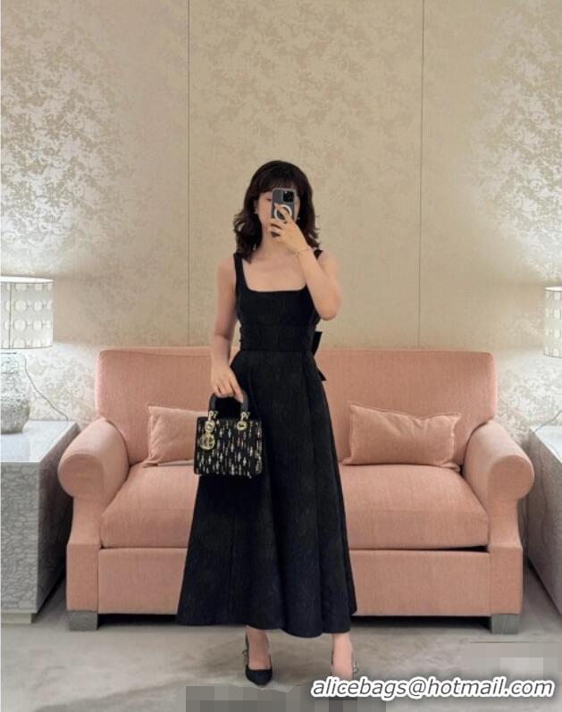Famous Brand Chanel Embroidered Dress with Bow 0812 Black 2025
