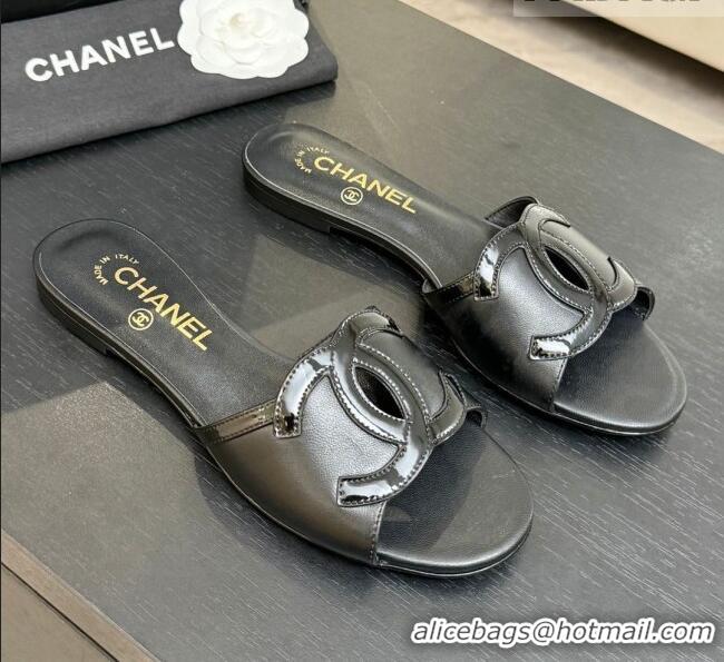 Low Cost Chanel Lambskin & Patent Leather Flat Mules Sandals G47252 Black 2026