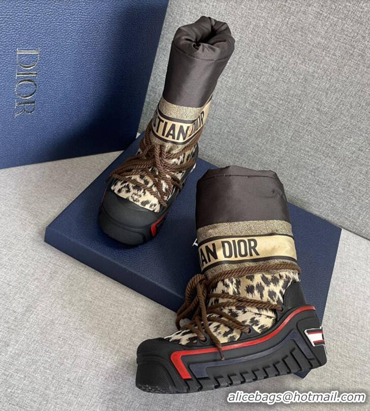 Luxury Discount Dior DiorAlps Snow Boots In Leopard Print Nylon With Chunky 16491 Brown/Black
