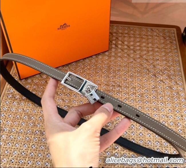 Famous Brand Hermes Women's Lucky Locker Belt 1.5cm in Epsom Leather 9131 Grey/Silver 2025