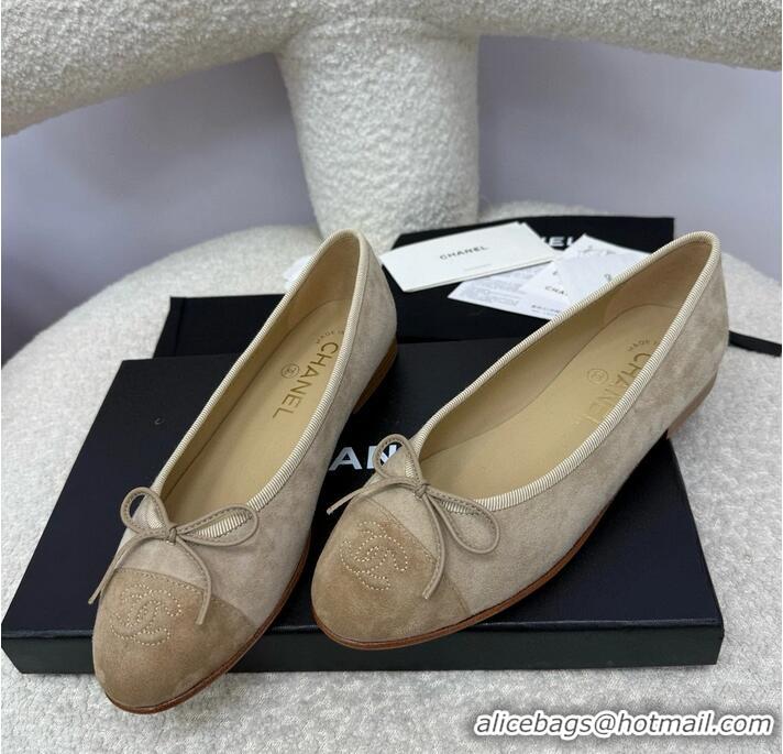 New Design Chanel CC 25A Ballet Flat With Bow Suede CH1023 Grey/Dark Brown