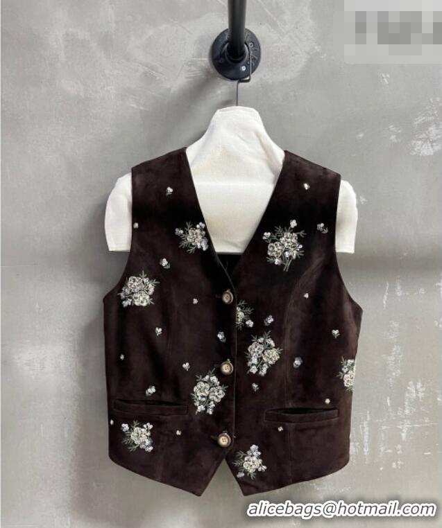 Best Price Miu Miu Suede Vest V030315 Dark Brown 2026