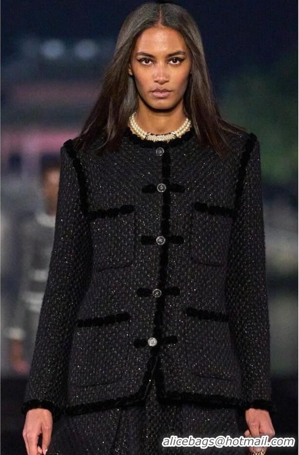 New Stylish Discount Chanel Embroidered Tweed Jacket CH1269 Black