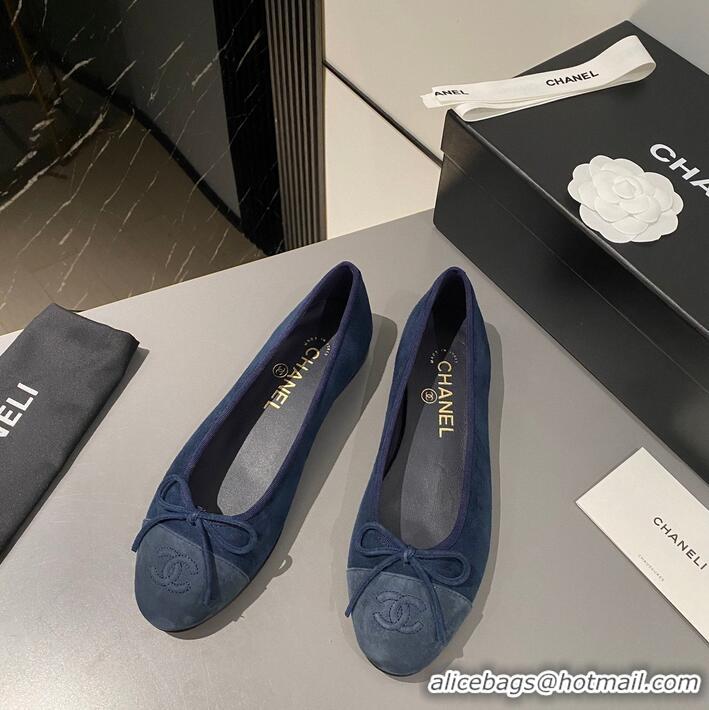 Promotional Chanel CC Ballet Flat With Bow Suede/Calfskin CH1023 Dark Blue