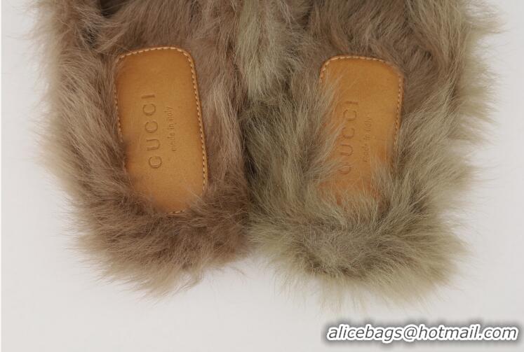 > Shoes Plaza > Gucci Shoes > Promotional Gucci Womens Leather Princetown Fur Slippers Flat Mules 89520 Black