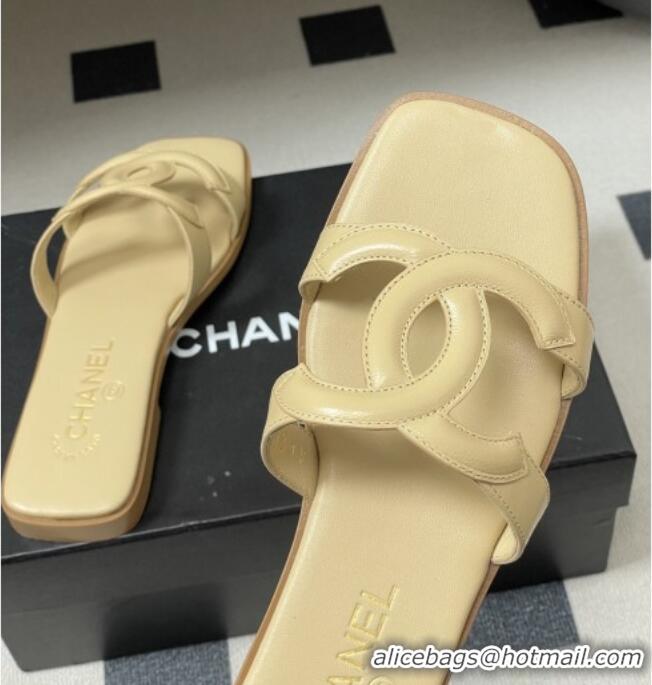 Top Quality Chanel Lambskin Mules Sandals G47250 Beige 2026
