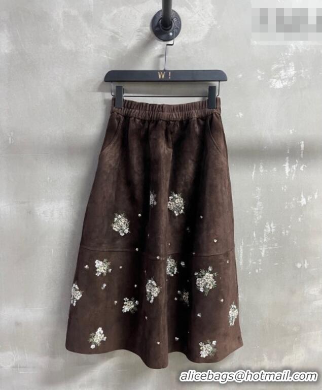 New Release Creation Miu Miu Suede Skirt V030316 Dark Brown 2026