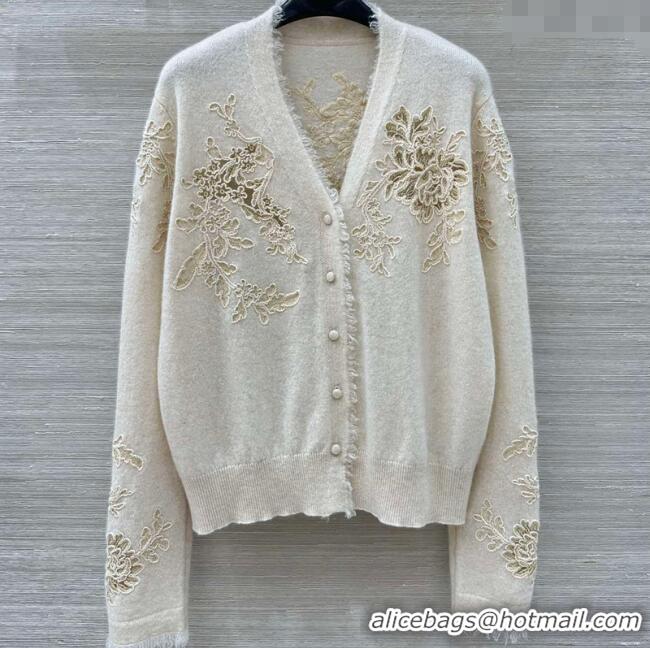 Your Position: Home > Clothes Online > Others Clothes > Buy Discount Ermanno Scervino Cashmere Cardigan with Lace Embroidery ES122601 Light Grey 2025