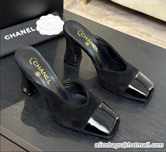Original Cheap Chanel Suede & Patent Calfskin Mules G47176 Black Spring Summer 2026
