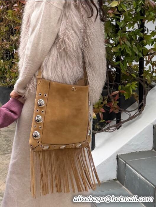 Top Design Valentino Nellcote Shoulder Bag in Suede with Fringes Tassel and Ball Studs 2033 Brown 2025