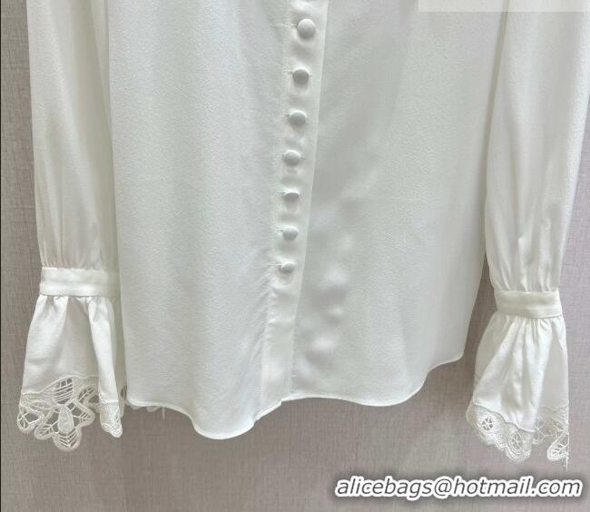 Your Position: Home > Clothes Online > Miu Miu Clothes > ​Inexpensive Miu Miu Silk Shirt with Lace Trim MM011306 White 2026
