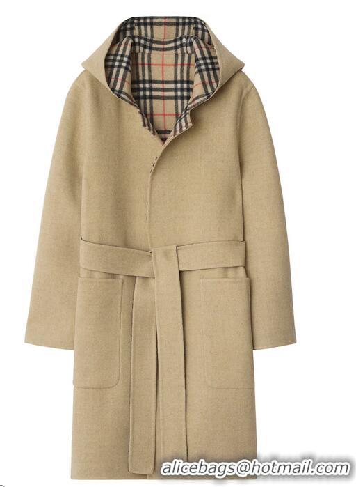 ​Top Quality Burberry Reversible Wool Hooded Wrap Coat B8912 Sand