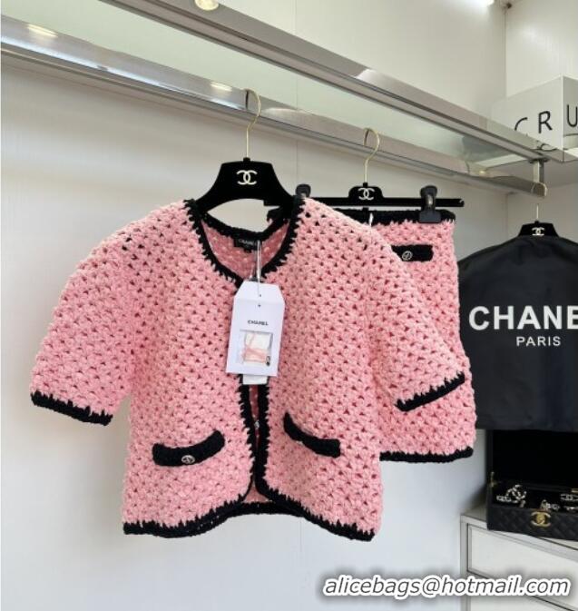 Top Quality Chanel Knit Cardigan and Skirt CH090221 Pink 2025