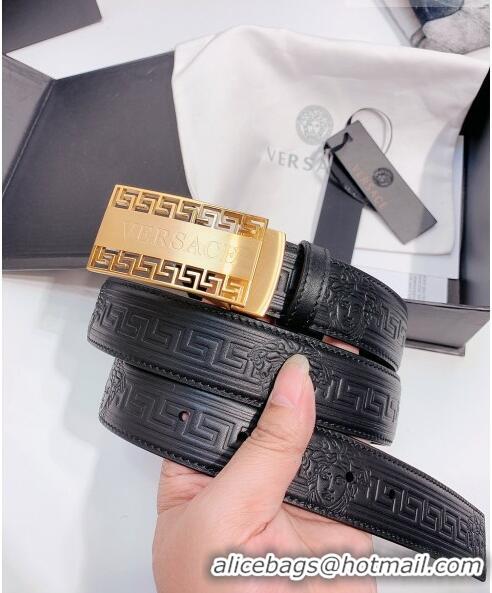 Top Quality Versace Logo Embossed leather Belt 3.5cm 040293 Black/Gold