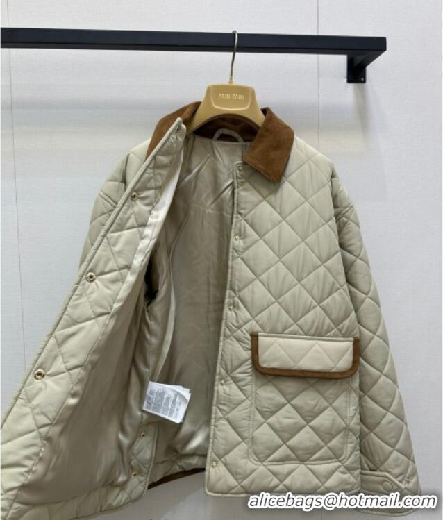Trendy Design Miu Miu Quilted Padded Jacket with Calf Leather Suede MM101423 Apricot 2025