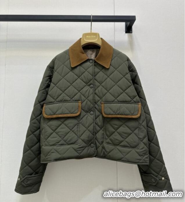 Top Grade Miu Miu Quilted Padded Jacket with Lamb Leather Suede MM101423 Green 2025