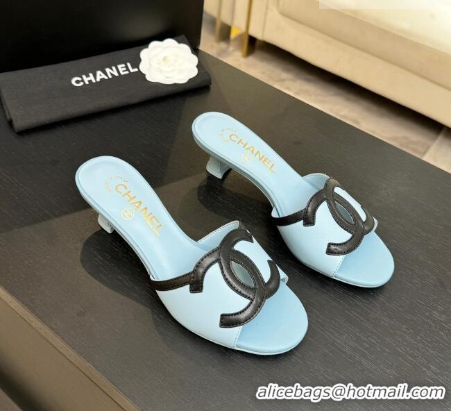 Pretty Style Chanel Lambskin Mules Sandals with 45mm Heel G47252 Blue 2026