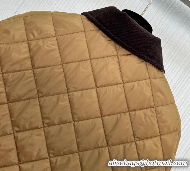 Luxury Cheap Prada Quilted Cotton-Padded Short Jacket Brandy PR091964 Brown 2025