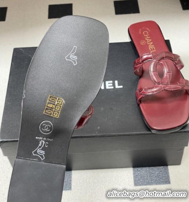Buy Fashionable Chanel Crocodile-patterned Calfskin Mules Sandals G47250 Burgundy 2026