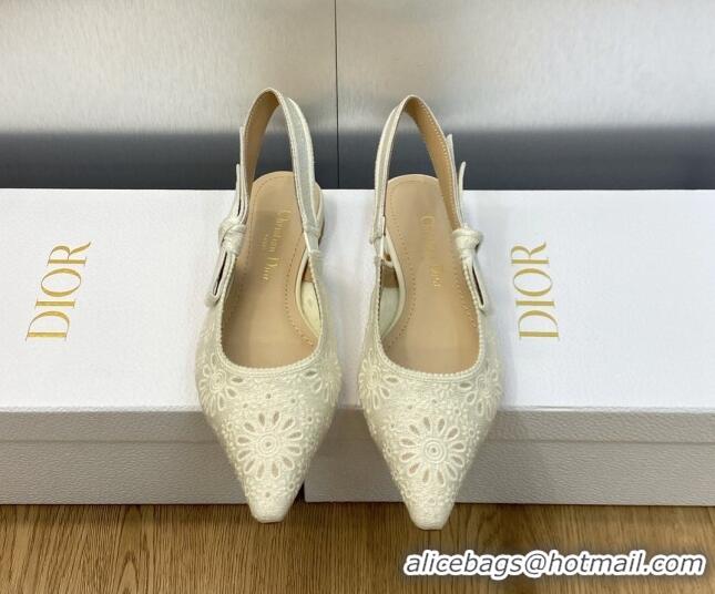 1:1 aaaaa Dior J'Adior Slingback Flat in White Canvas Embroidered with Saint-Gall Motif 071077
