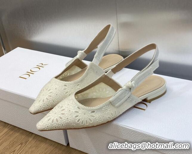 > Shoes Plaza > Chrisitan Dior Shoes > 1:1 aaaaa Dior J'Adior Slingback Flat in White Canvas Embroidered with Saint-Gall Motif 071077