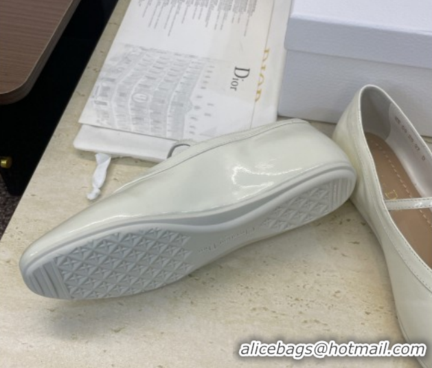 Modern Dior New Ballet Flats in Crinkled Patent Calfskin Leather White DR121604 1216103