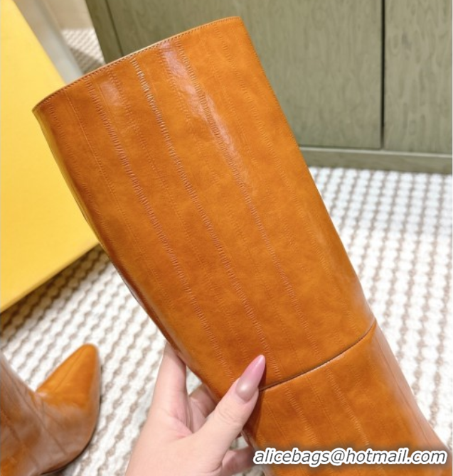 1:1 aaaaa Fendi Arco Heel High Boots 9.5cm in Hagfish Embossed Leather Beige 1030034