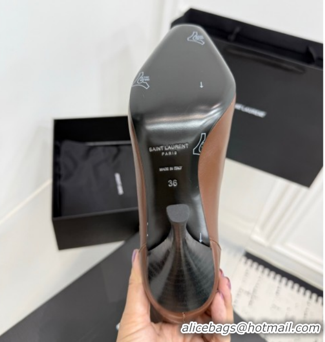 > Shoes Plaza > Yves Saint Laurent Shoes > 1:1 aaaaa Saint Laurent Niki Heel Ankle Boots 10cm with YSL Strap in Calf Leather Brown 1028117