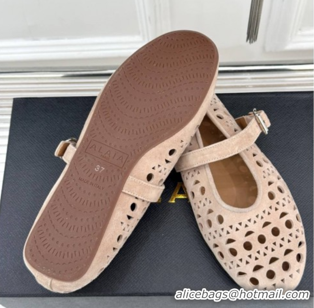 AAAAA Alaia Ballet Flat in Openwork Suede Nude Pink 50224051