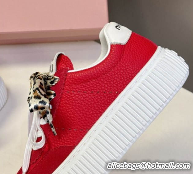 > Shoes Plaza > Miu Miu Shoes > AAAAA Miu Miu Suede and Leather Sneakers 4.5cm with Double Lace Red 1024096
