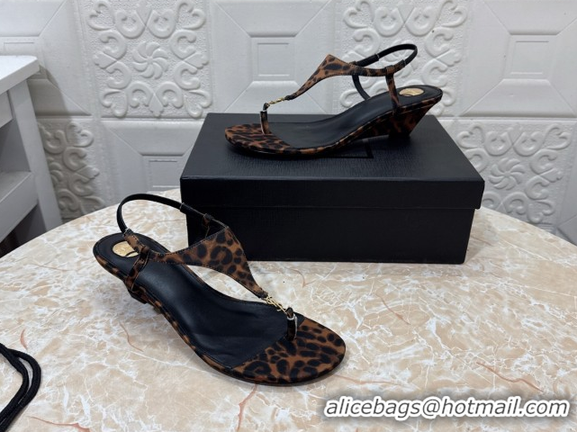 AAAAA Saint Laurent Cassandra Wedge Thong Sandals 3.5cm in Leopard Print 0825125