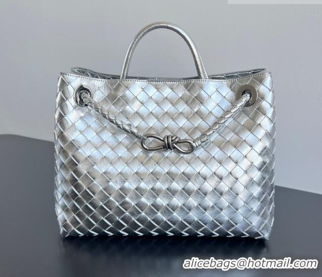 Your Position: Home > Bottega Veneta Handbag > Well Crafted Bottega Veneta Medium Andiamo Top Handle Bag in Intrecciato Leather 743572 Silver-Tone 2026