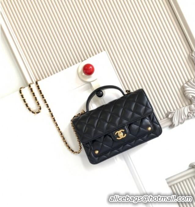 Affordable Price Chanel Shiny Lambskin Wallet with chain and Top Handle Bag AP4674 Black 2025
