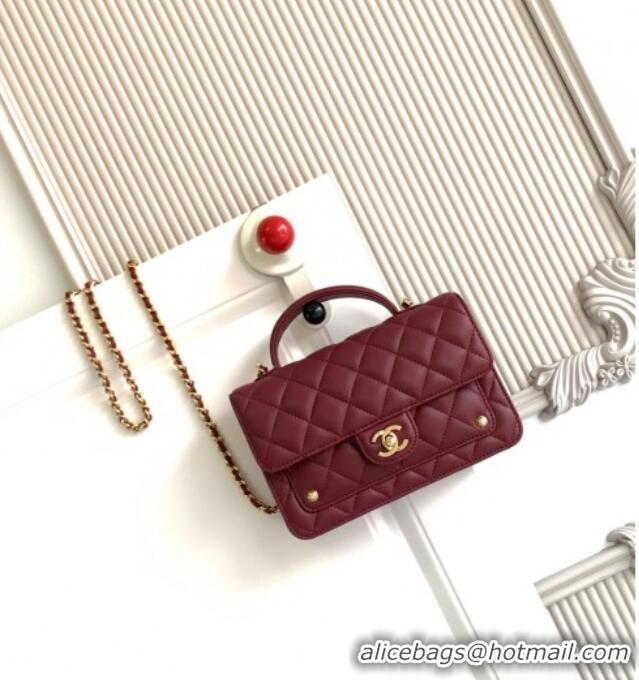 Top Quality Chanel Shiny Lambskin Wallet with chain and Top Handle Bag AP4674 Burgundy 2025