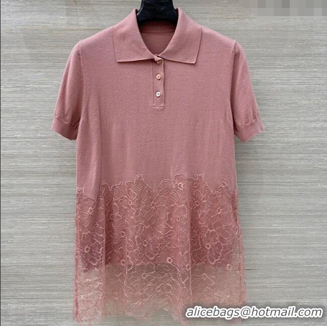 Affordable Price Fendi Cashmere Polo Shirt with Lace 1014 Pink 2025