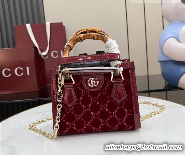 Best Price Gucci Diana crystals velvet small tote bag 675800 Ancora Red 2026