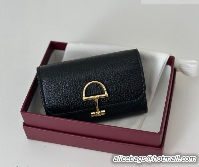 Affordable Price Gucci Softbit Leather card case with Half Horsebit 828148 Black 2026