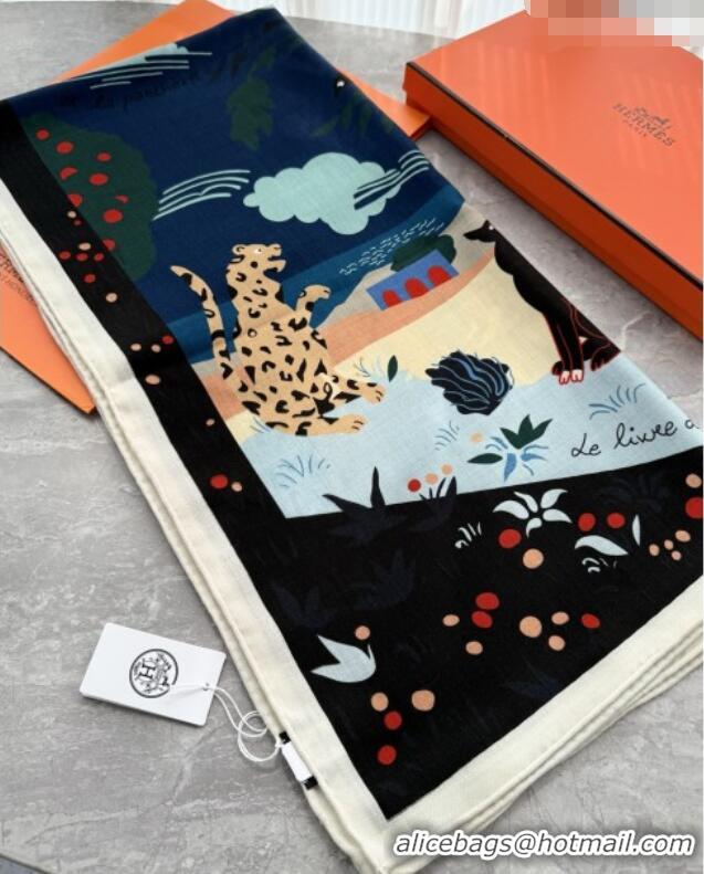 Affordable Price Hermes Cashmere Silk Le Livre d'Esope Shawl Scarf 140x140cm H1510 Blue 2026 Top