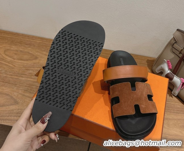 Best Price Hermes Chypre Slide Sandals in Calfskin Suede Tan/Brown 2025 H082008 0820072